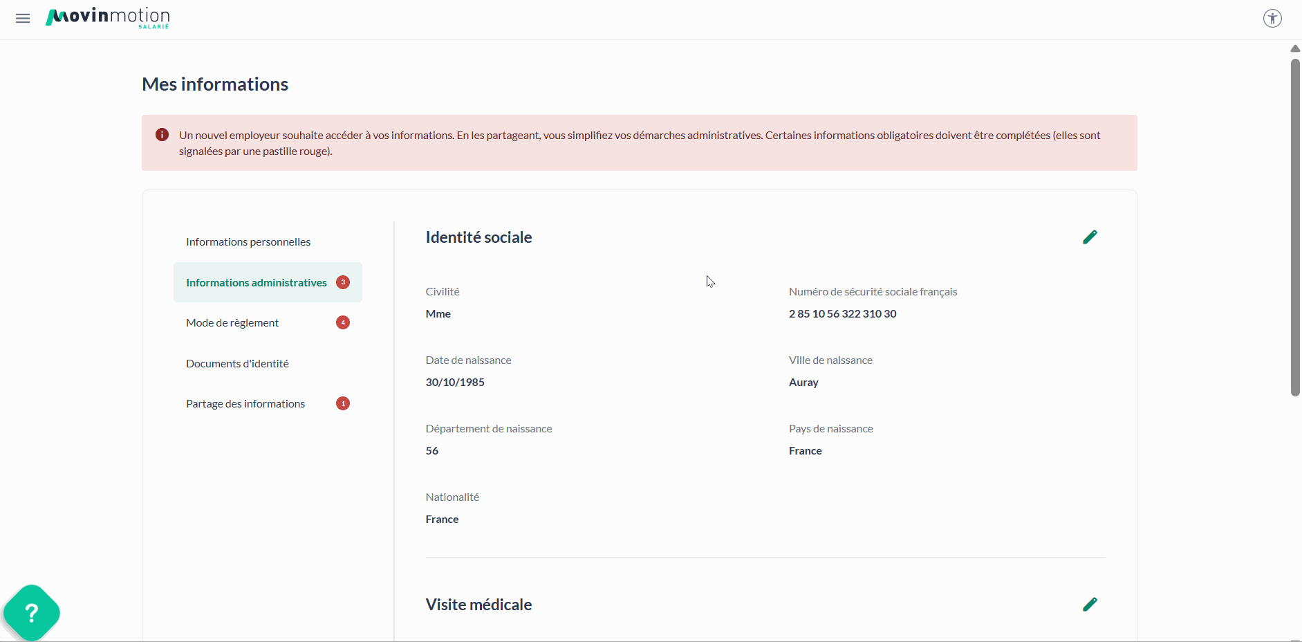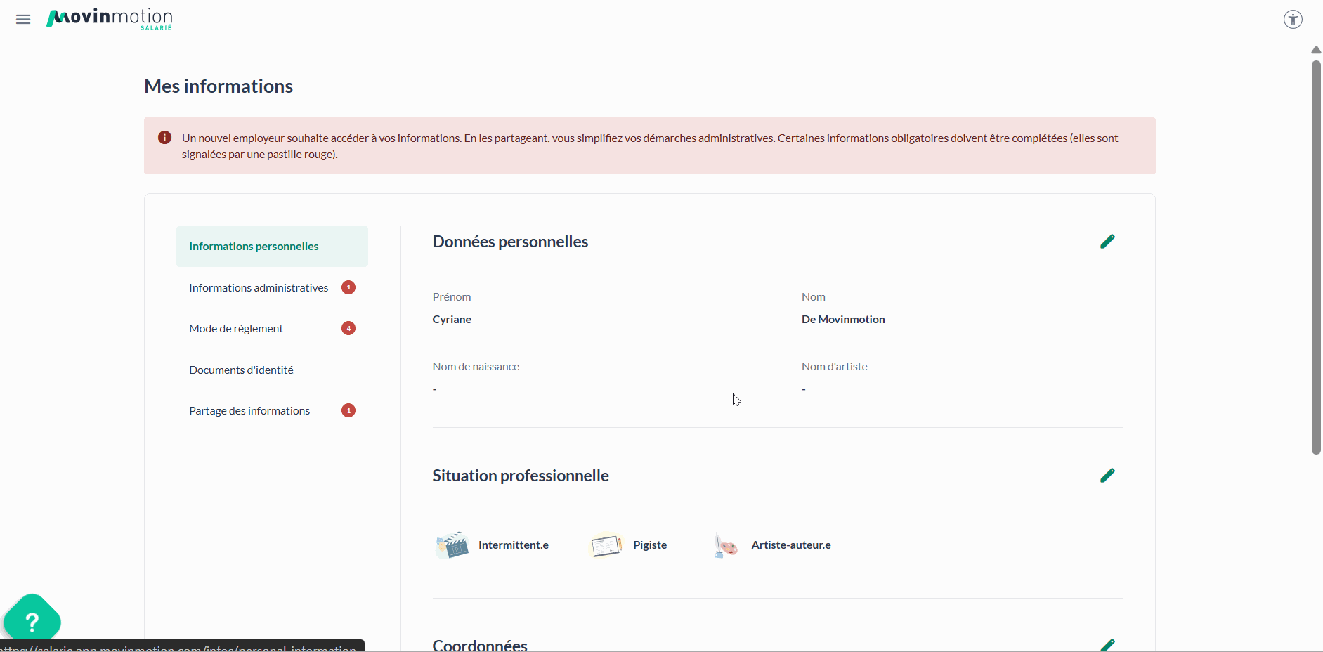 Le menu Mes informations de votre espace salarié correspond à votre fiche de renseignements personnels.