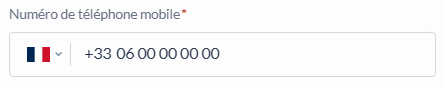 - Saisissez votre numéro de téléphone (ex : pour la France 06 XX XX XX XX ou +336 XX XX XX XX)
