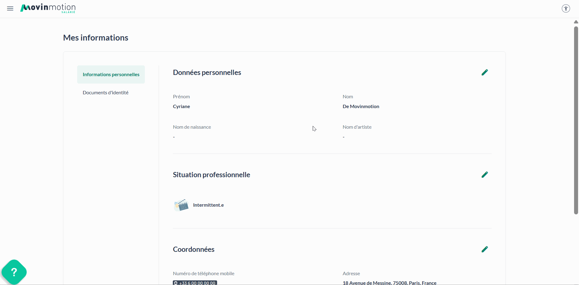 Depuis votre menu Mes informations > sous-menu Informations personnelles, vous avez la possibilité d’indiquer votre ou vos situation(s) professionnelles (au niveau de la ligne Situation professionnelle).